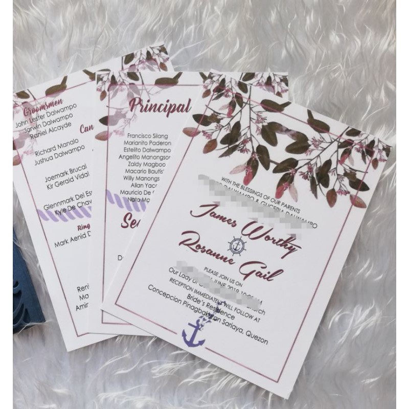 Wedding Invitation 5x7 3 Sheet With Envelope Printing Service Only Shopee Philippines